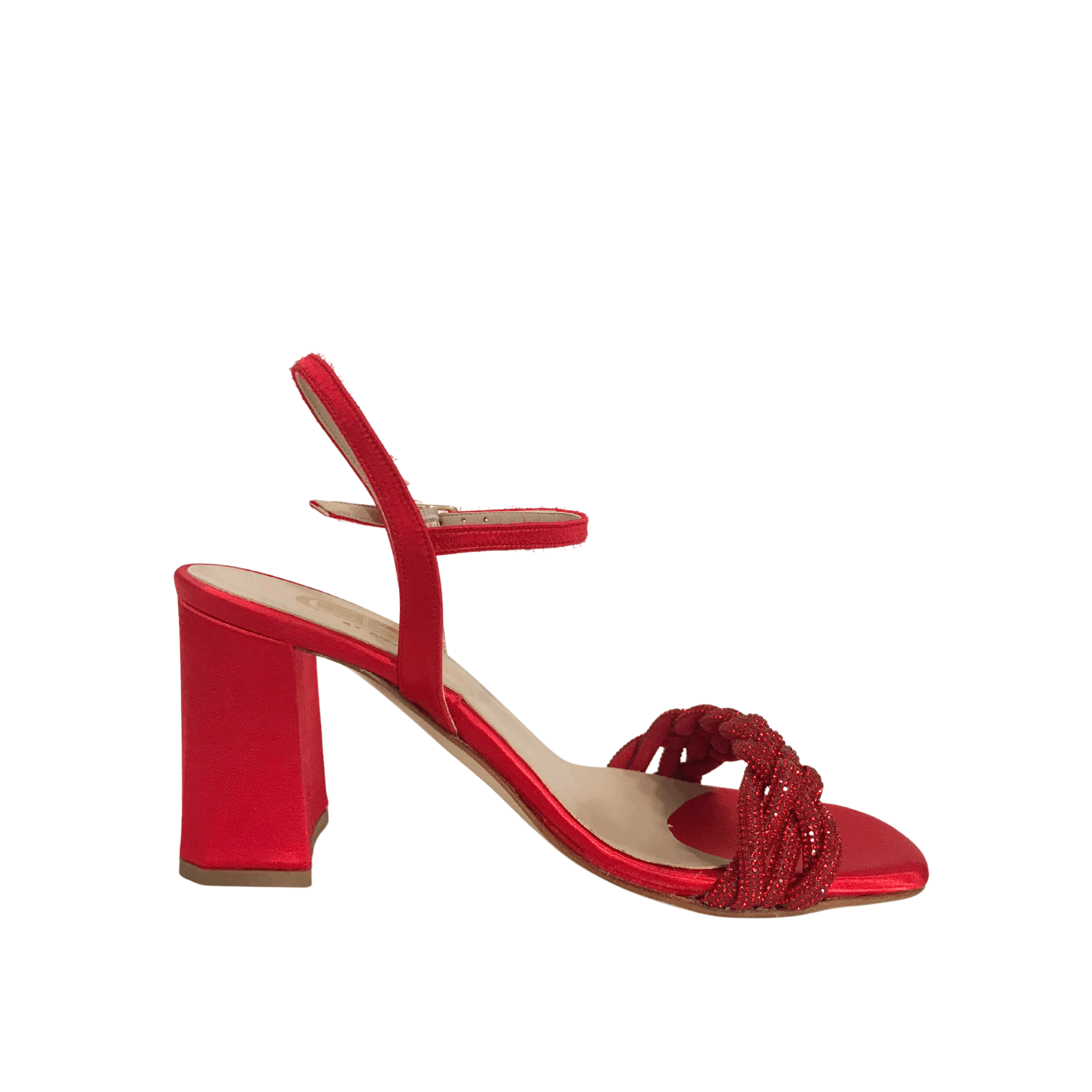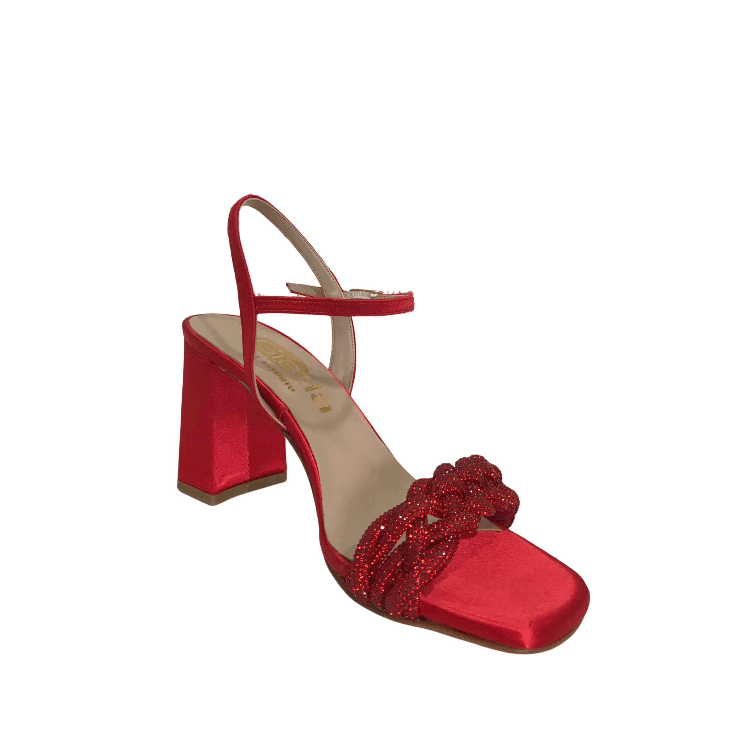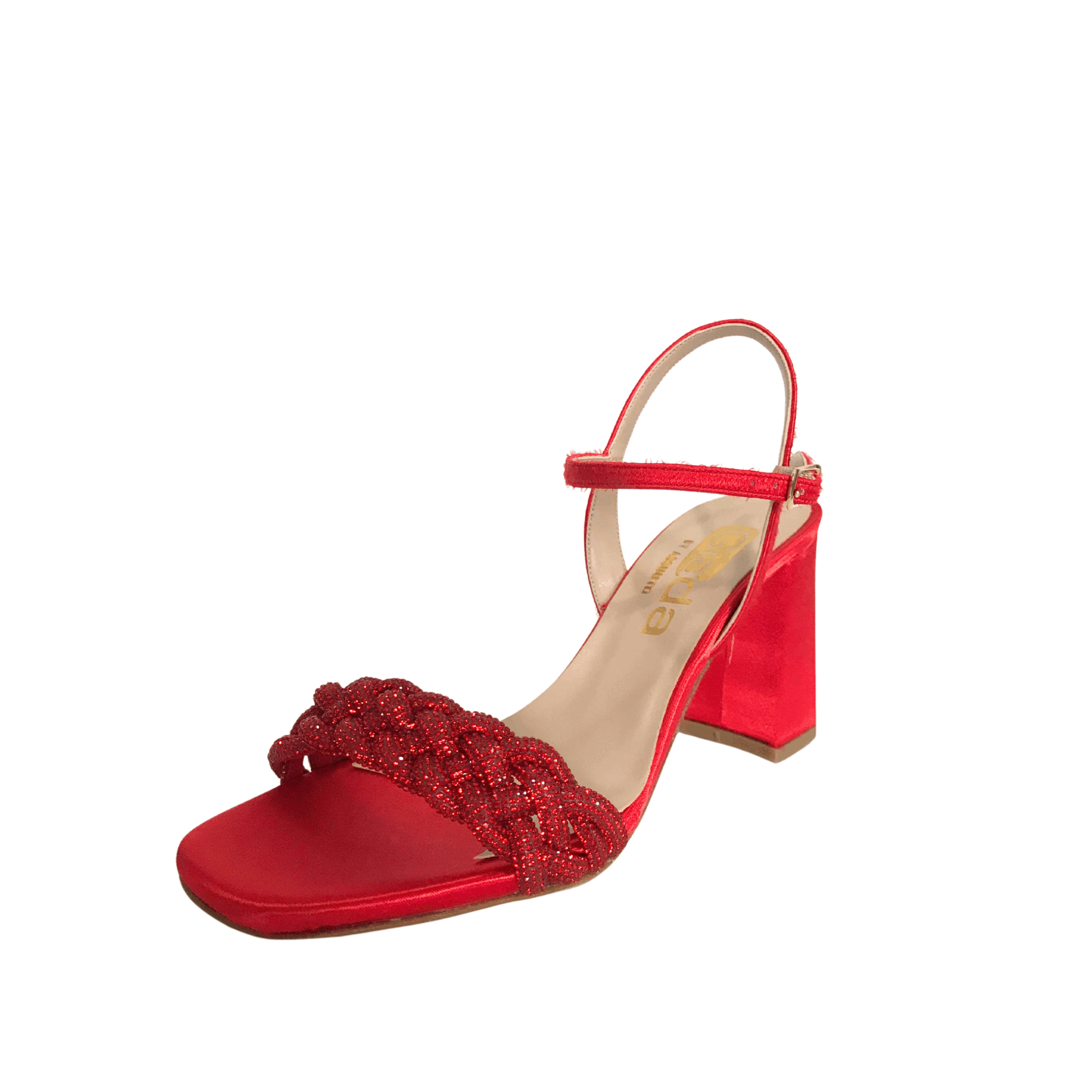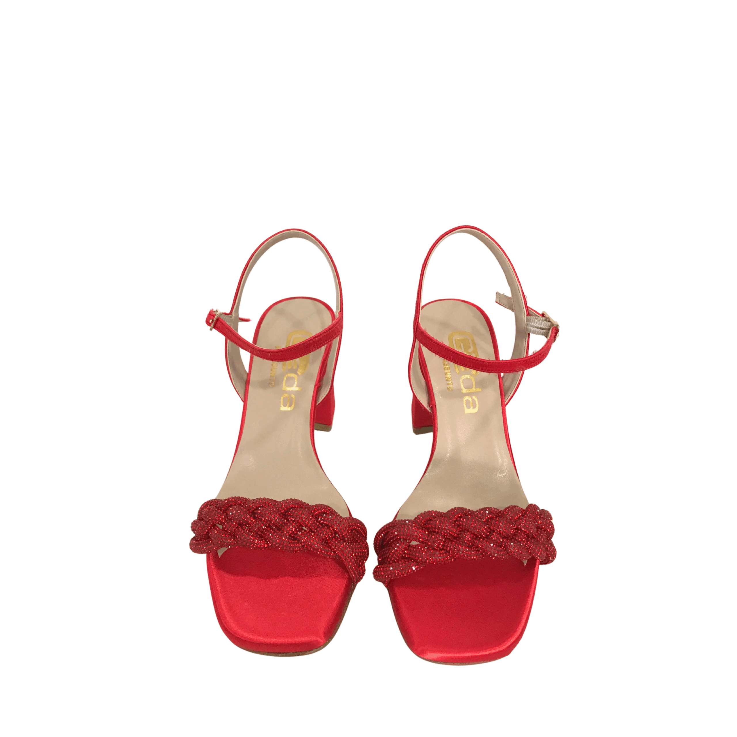 Aggiungi un tocco di eleganza vivace al tuo look con questi raffinati sandali rossi firmati Giada Shoes. Realizzati in raso e impreziositi da una fascia anteriore intrecciata con dettagli glitterati, questi sandali esprimono tutta la qualità e lo stile del vero Made in Italy.