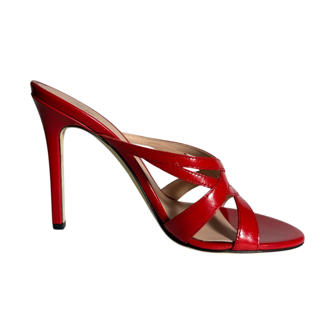 Sandali a Fasce Incrociate in Vernice rossa – Tacco Alto